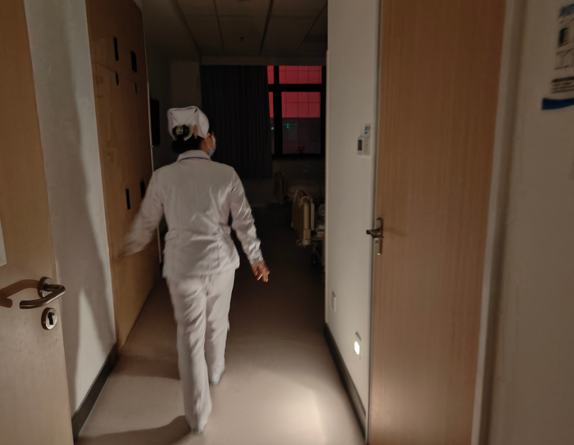 夜幕下,爱的脚步遍布每一个角落,夜班护士按照等级护理巡视着每一个病房,轻轻推开病房的门,认真观察每位病人,帮这个病人拉上床扶栏,帮那个病人整理被角,观察旁边心电监护数值变化,查看病人呼吸面色,检查管路固定情况,对不能自理患者进行定时翻身。每一次巡视都承担了责任,每一个动作都在守护着安全。