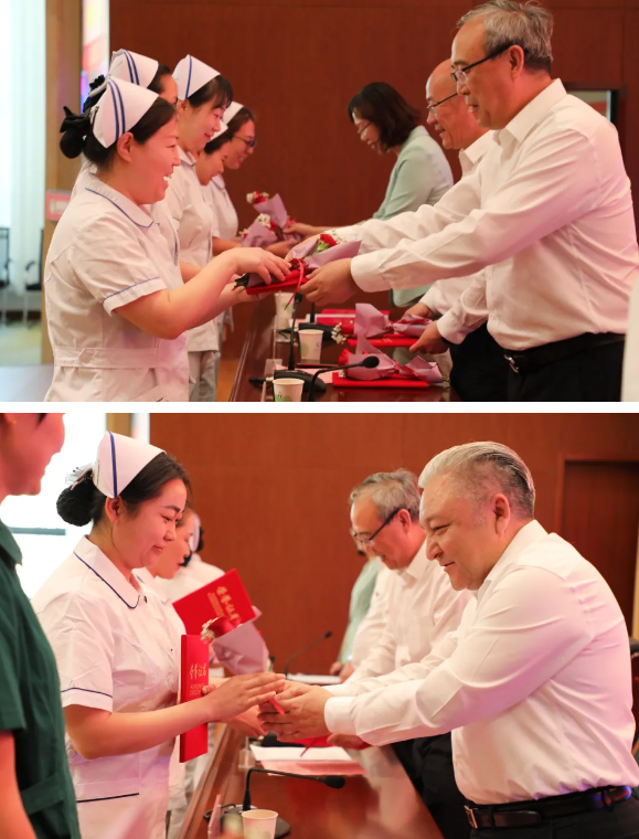 表彰大会后,院党委领导班子成员分组看望慰问临床一线护士,为大家送上节日的祝福。每到一处,院领导都详细了解大家的工作、生活情况,并为她们送上鲜花和祝福,感谢她们为卫生健康事业辛勤付出、真情奉献。