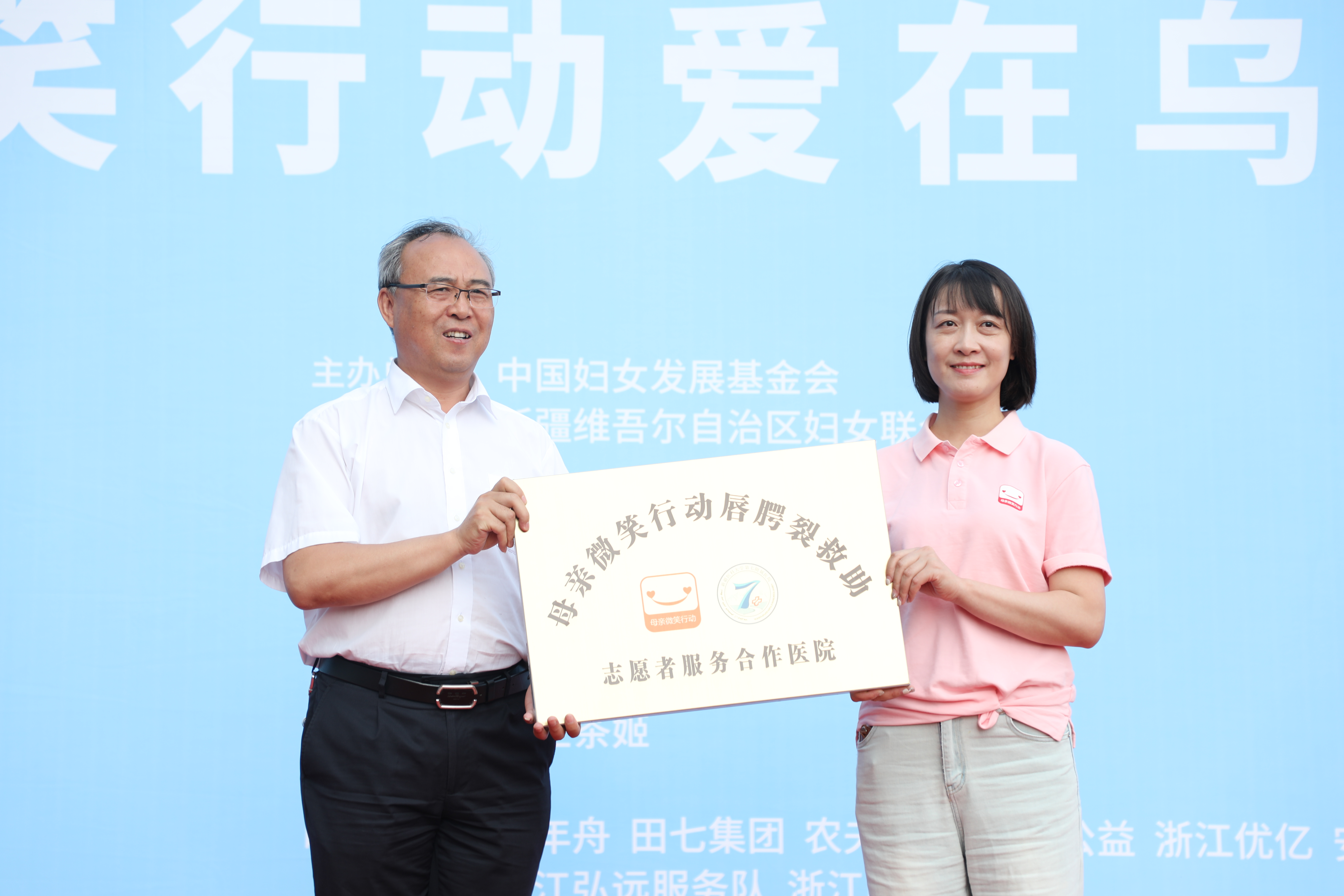 8月8日上午,大手牵小手-母亲微笑行动爱在乌鲁木齐大型公益活动在新疆医科大学第七附属医院正式启动。本次活动由中国妇女发展基金会、新疆维吾尔自治区妇女联合会主办,新疆妇女儿童发展基金会、新疆医科大学第七附属医院、杭州微笑行动慈善医院承办。